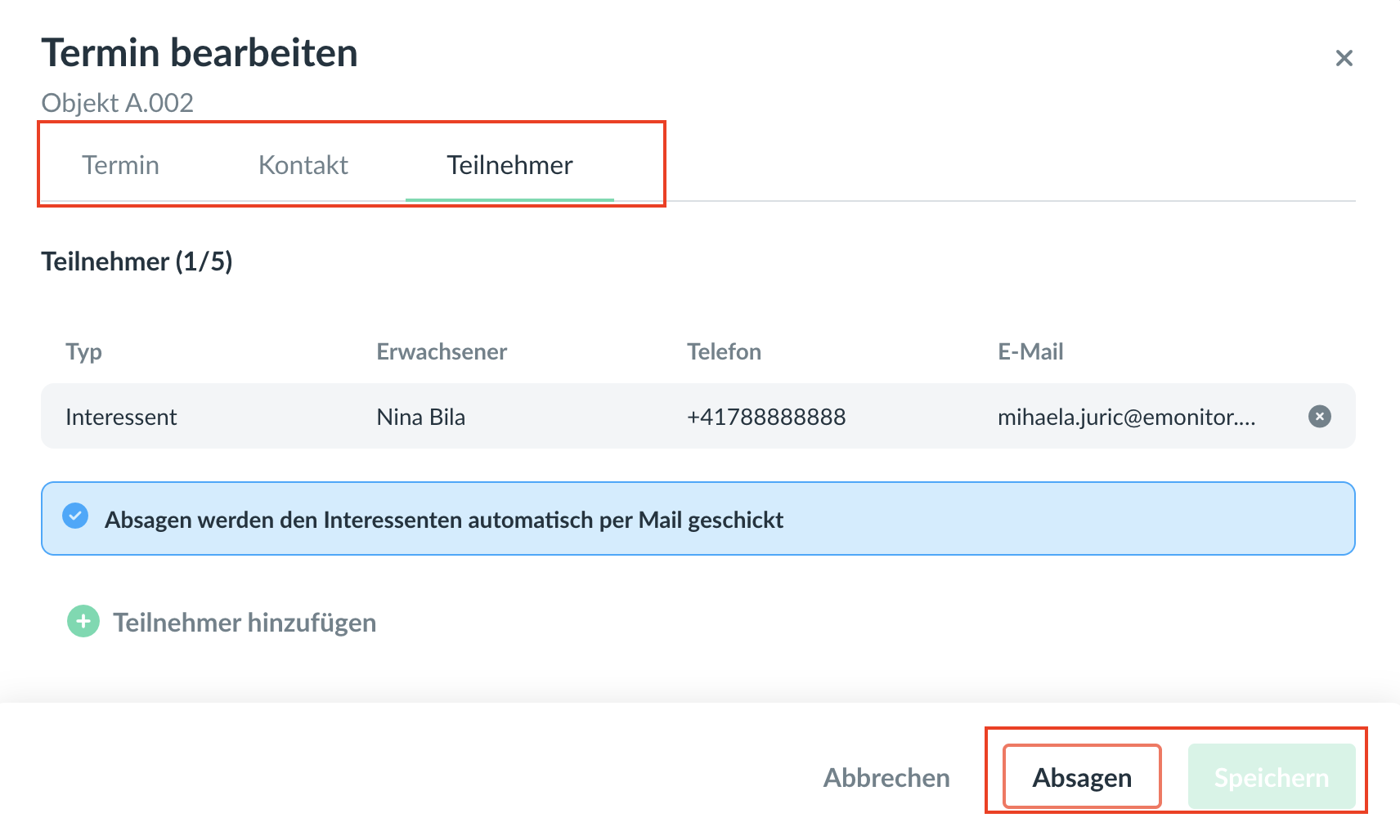 Zudem besteht die Möglichkeit, bei Änderungen eines Termins ein Email an alle Teilnehmer einer Besichtigung zu senden.