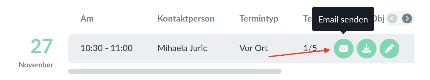 Änderung oder Informationen zum Termin können Sie jederzeit via Email-Button an alle Teilnehmer*innen einer Besichtigung zu senden: