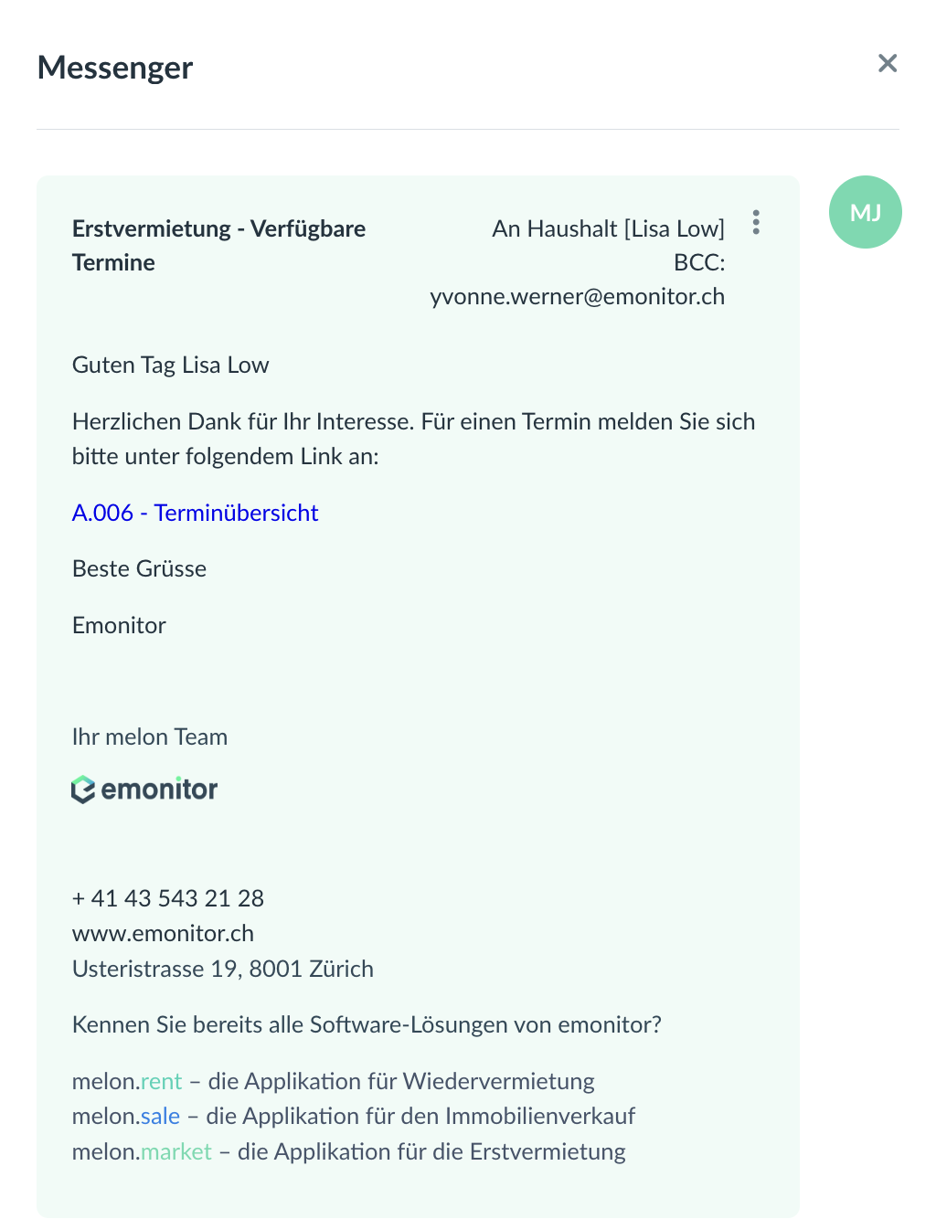 7. Die Interessenten erhalten die Email mit einem Link, dort können Sie sich einen gewünschten Termin auswählen und "bestätigen".