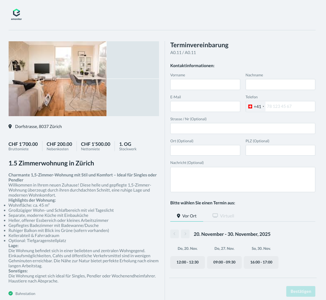 - das Objekt muss über eine oder mehrere Besichtigungstermine verfügen