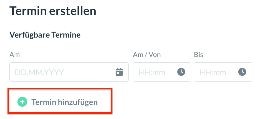 Eine automatische Funktion um regelmässig wiederholte Termine zu erstellen, gibt es zum jetzigen Zeitpunkt leider noch nicht. Es können jedoch so viele Termine wie gewünscht in der Terminerstellung unter Termin hinzufügen hinterlegt werden: