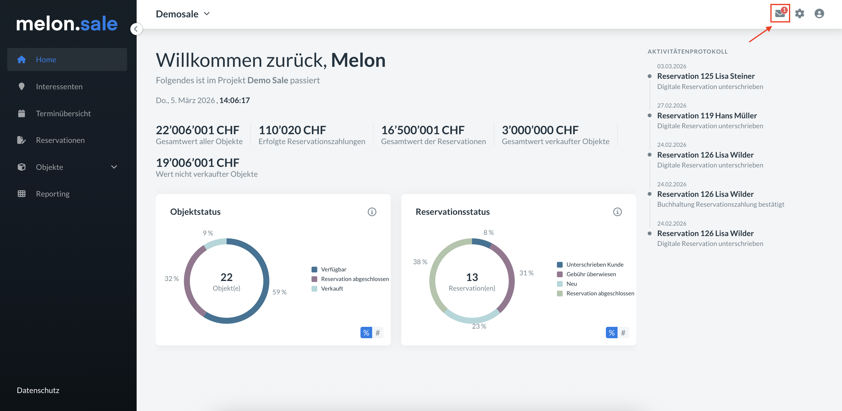 Mit diesen Funktionen wird die Verwaltung Ihrer Kommunikation in melon unkompliziert und effektiv.