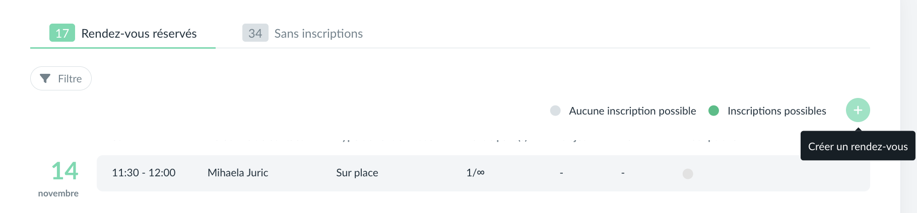 Vous pouvez également créer les rendez-vous directement dans la vue détaillée de l'objet: